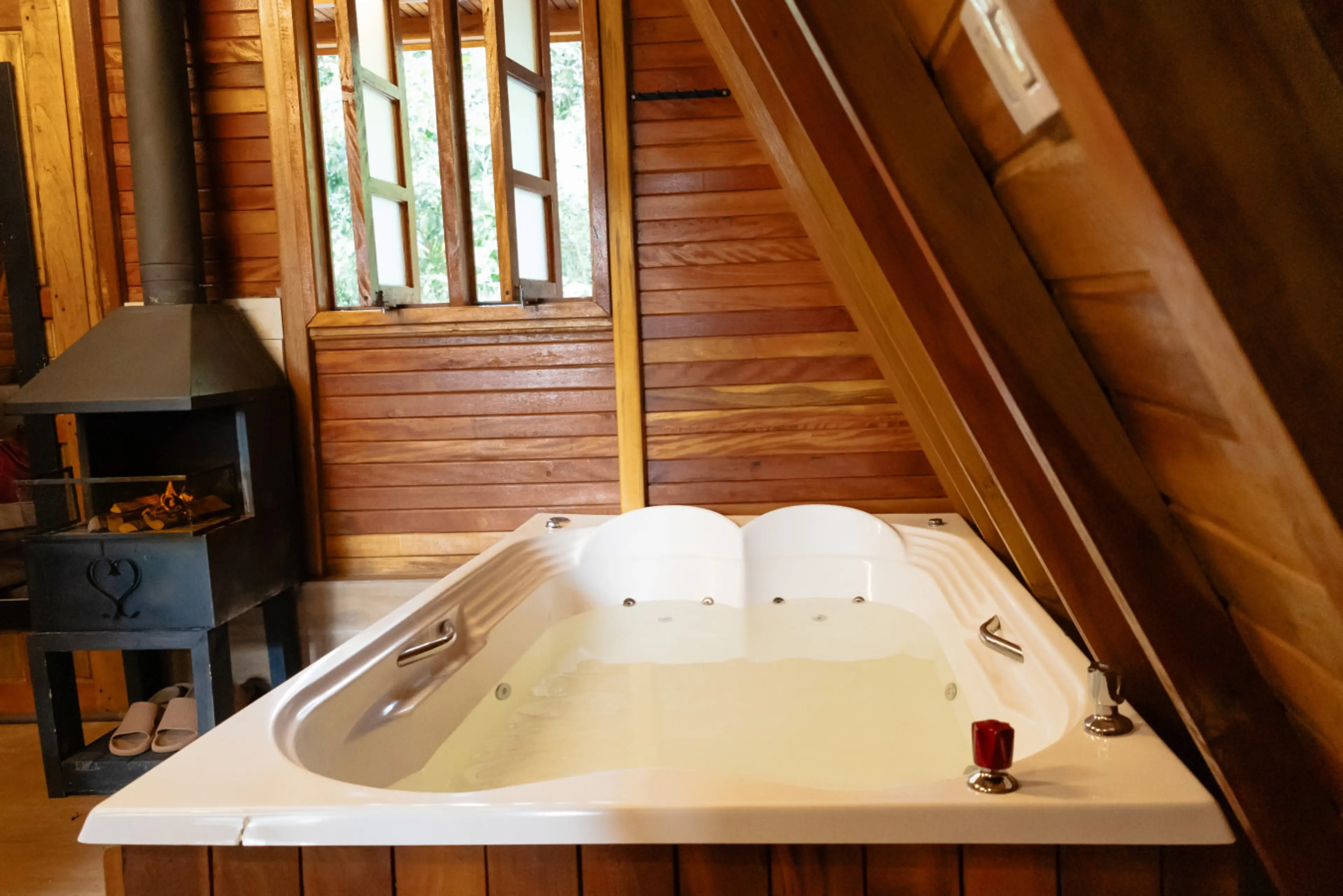 Chalé Sol 33m²: Cama Queen Hidro Lareira Ofurô (Pernoite das 17h às 11h)