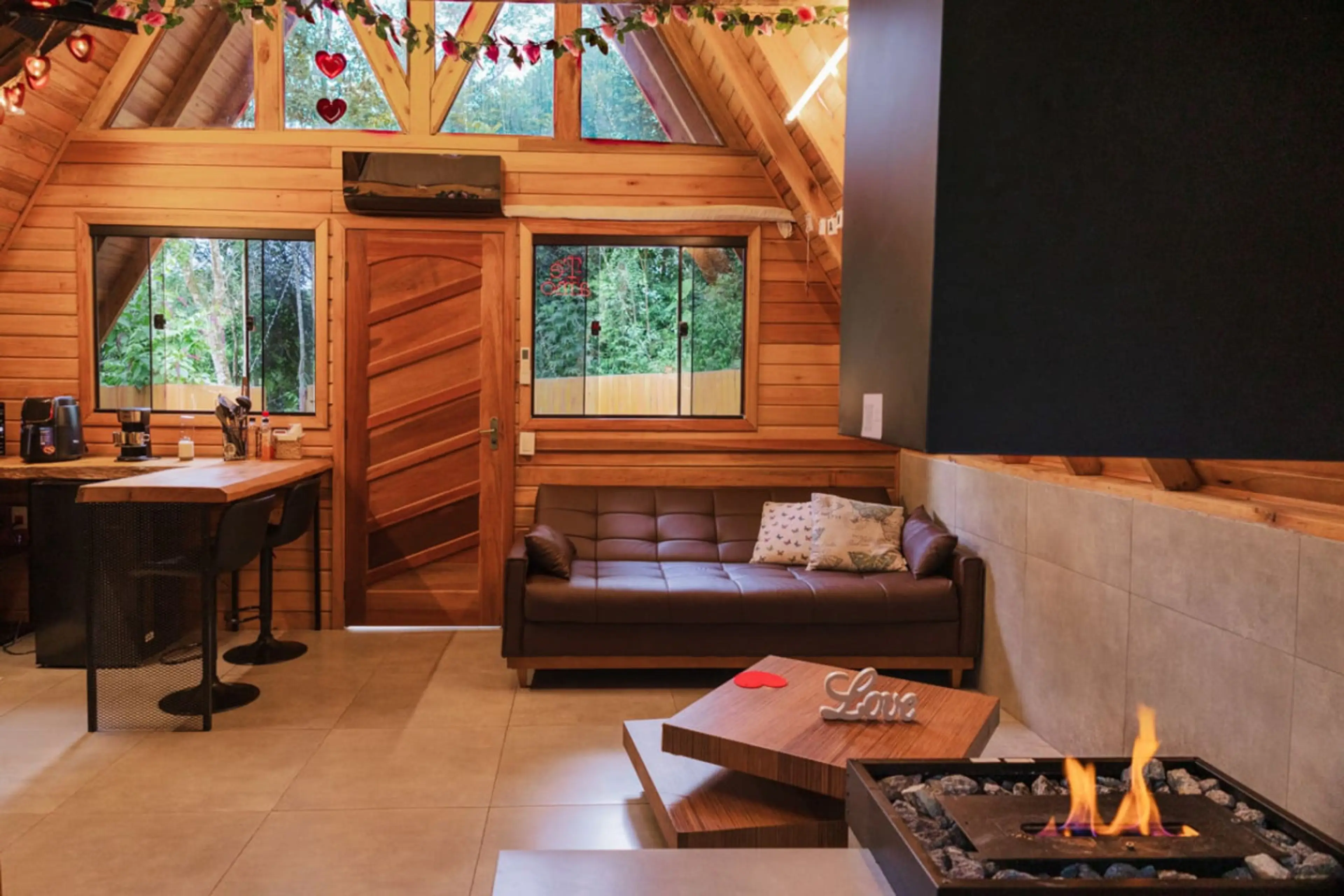 Chalé Estrela 35m²: Cama Queen Hidro Lareira Ofurô